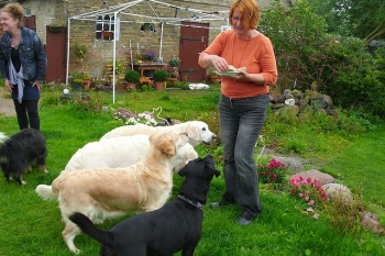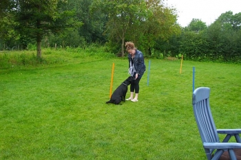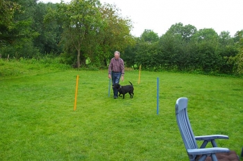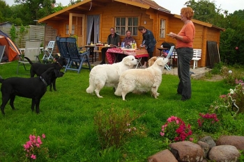 Auf Böhrs Hoff in Bisdorf haben sich in diesem Jahr zum ersten Mal Gleichgesinnte getroffen, die auch oder gerade im Urlaub mit ihrem Liebling arbeiten wollten. Der hauptsächliche Punkt in der diesjährigen Wunschliste war das Arbeiten an der Leinenführigkeit. Die kleine Gruppe hatte viel Freude an der Arbeit und konnte Stück für Stück durch praktisches Arbeiten Erfolge erzielen. Für die Theorie und Einzelgespräche mit Trainer und Kollegen war immer ausreichend Zeit und in der entspannten Athmosphäre der Urlaubsstimmung freuten sich die Teilnehmer am Ende der gemeinsam verbrachten Zeit über ein gemeinsames Frühstück.
